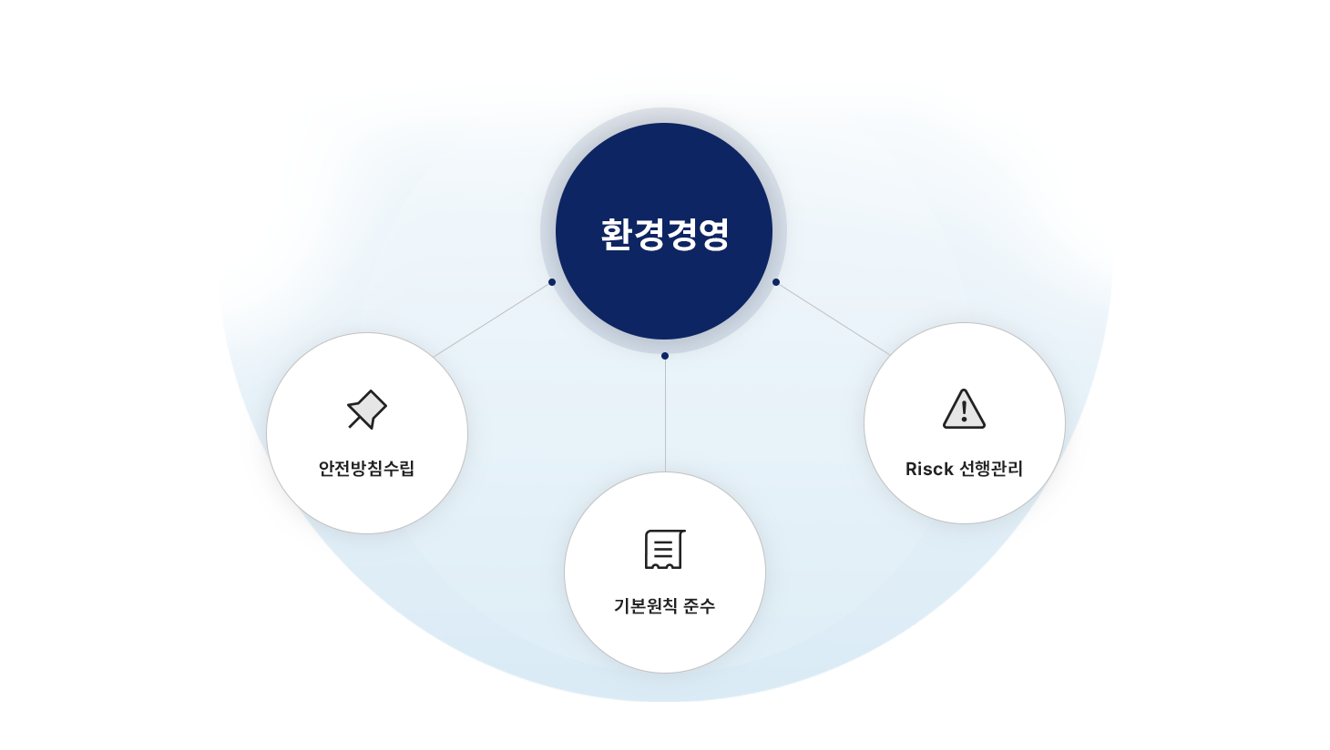 또한, 인간존중 이념에 기반하여 안전한 근무환경을 조성하고 모든 종사자의 건강과 행복을 보전하며, 스스로와 동료의 안전을 최우선으로 한다.